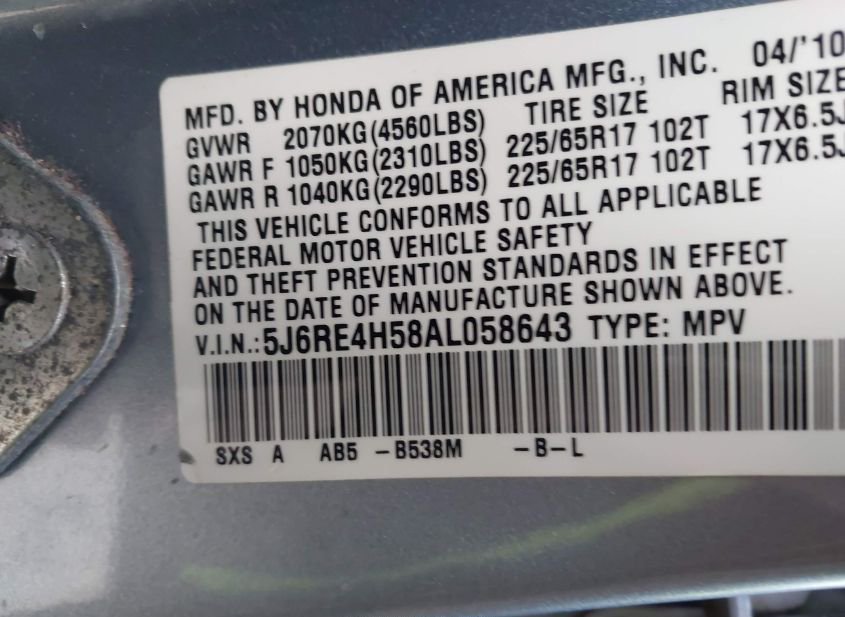 - Название лота: 2010 HONDA CR-V EX
