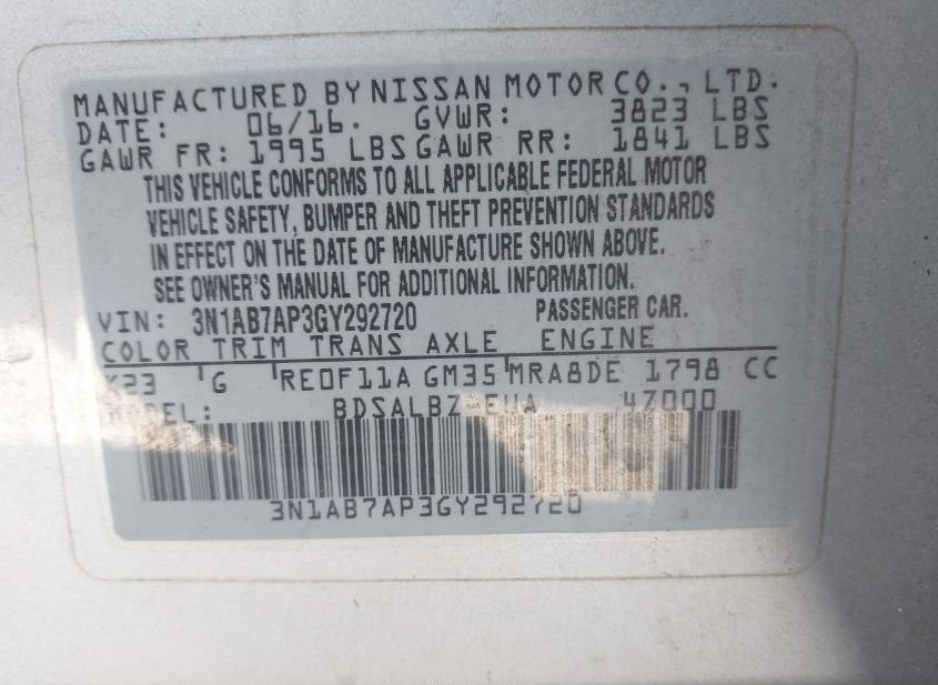- VIN: 3N1AB7AP3GY292720