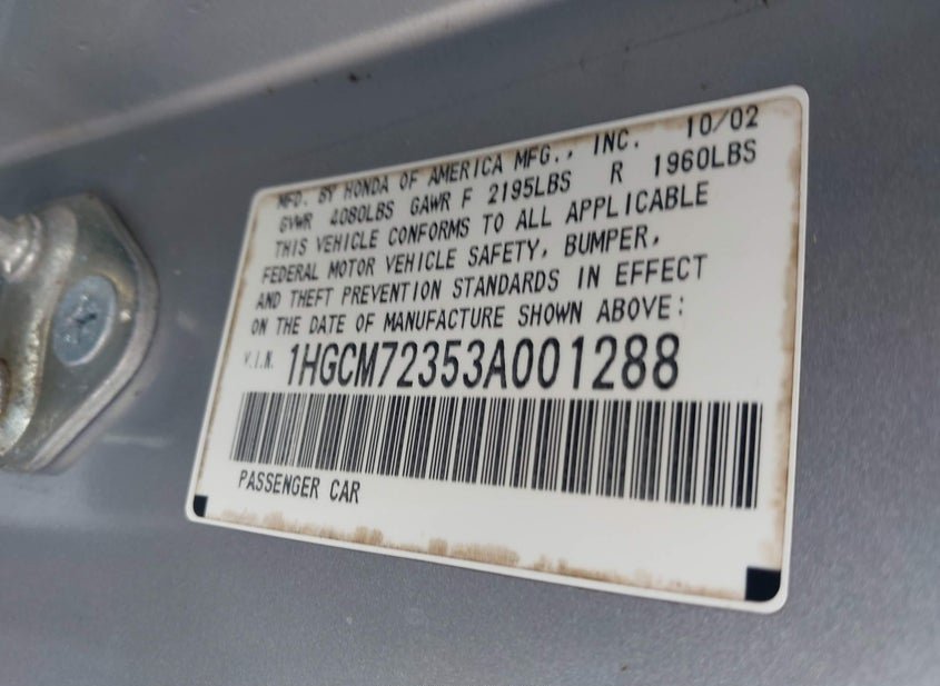 - VIN: 1HGCM72353A001288