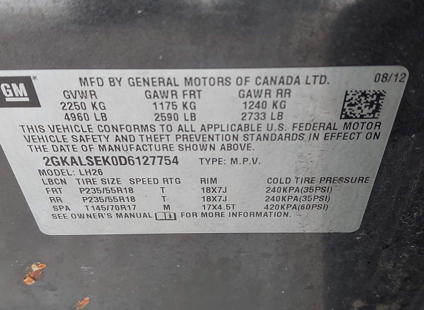 - VIN: 2GKALSEK0D6127754
