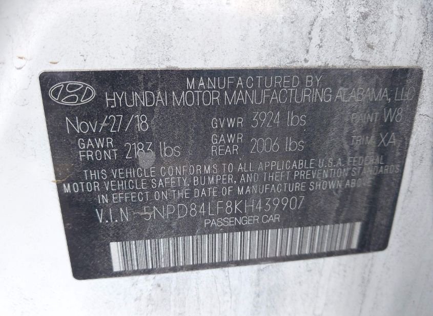 - VIN: 5NPD84LF8KH439907