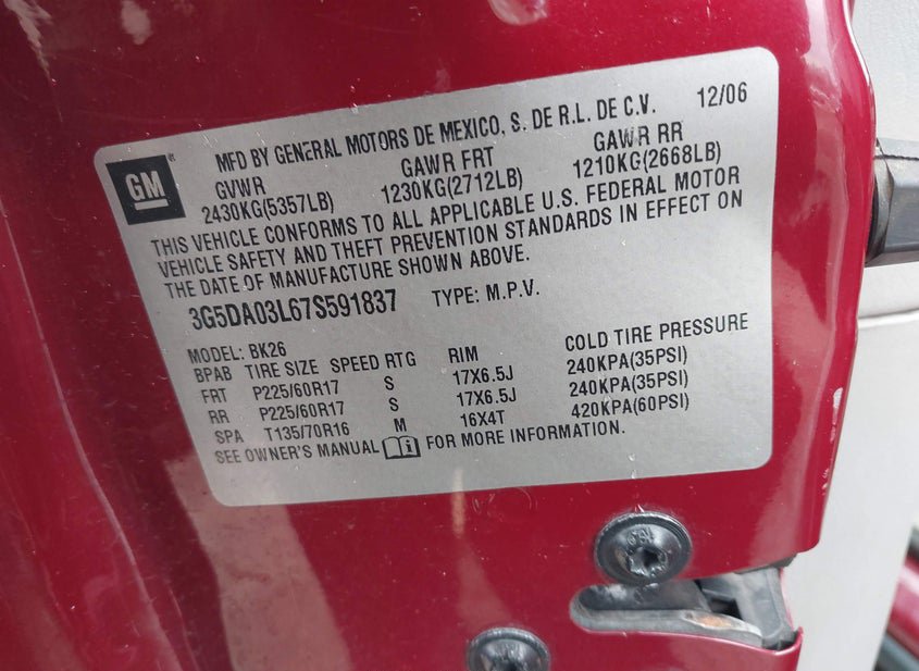 - Название лота: 2007 BUICK RENDEZVOUS CX