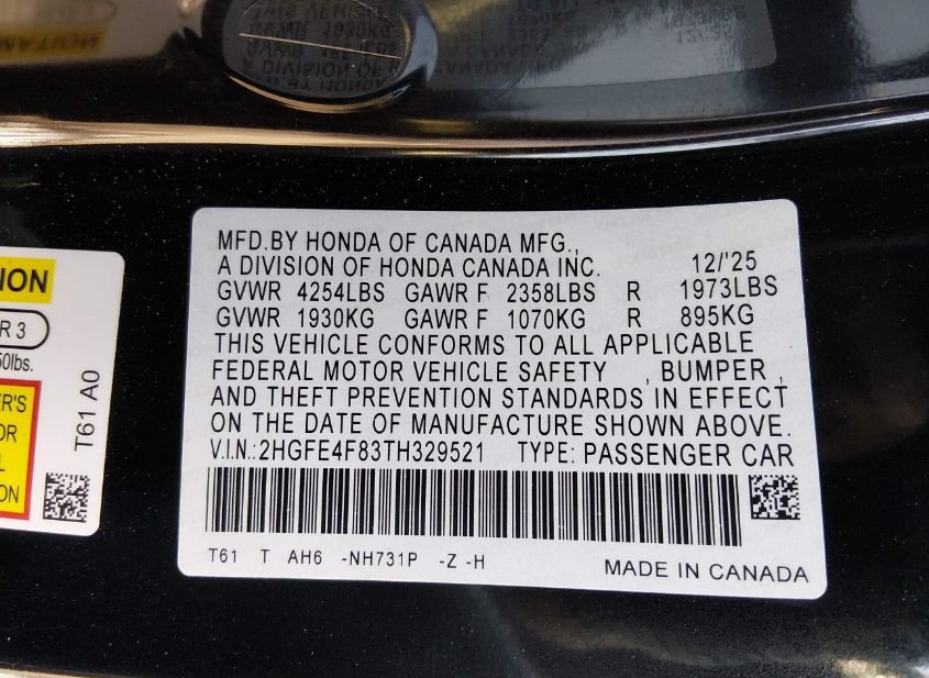 - VIN: 2HGFE4F83TH329521