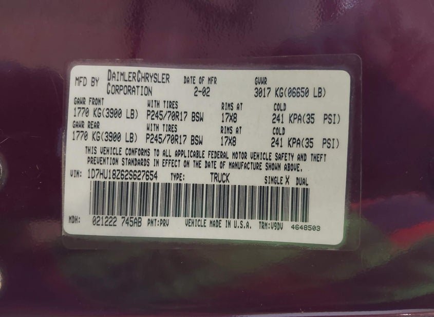 - VIN: 1D7HU18Z62S627654