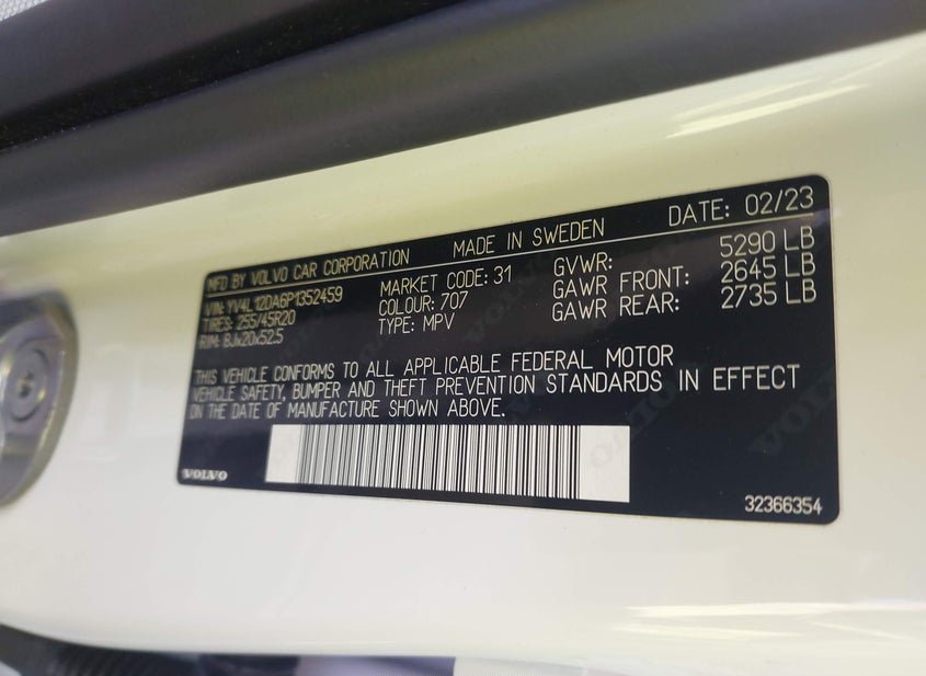 - VIN: YV4L12DA6P1352459