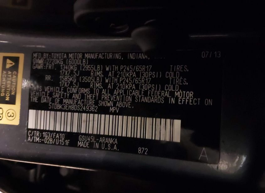- VIN: 5TDBK3EH8DS249362