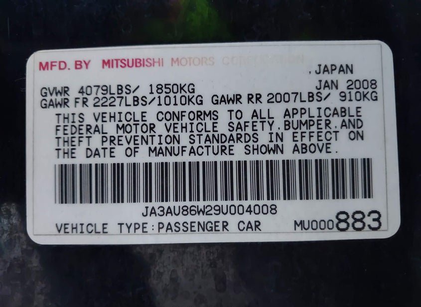 - VIN: JA3AU86W29U004008