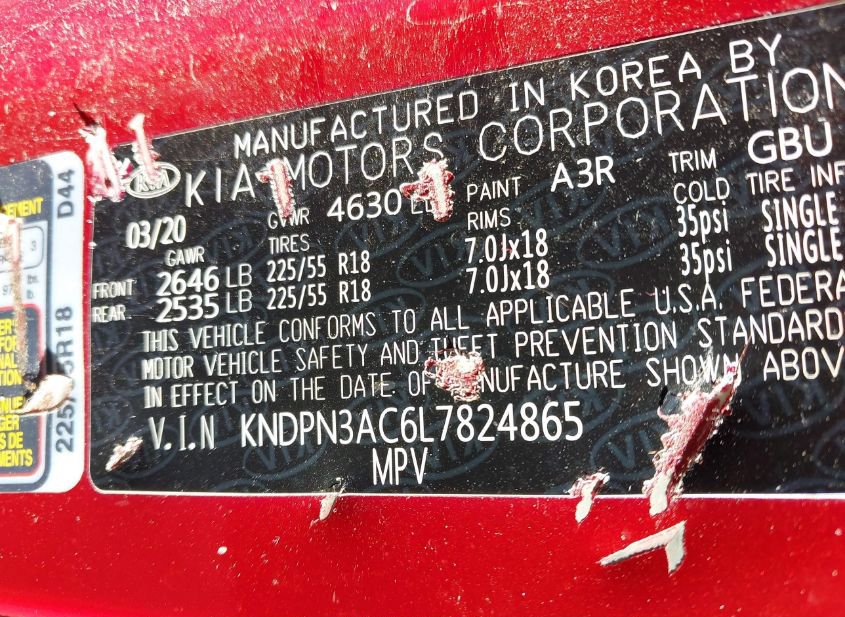 - VIN: KNDPN3AC6L7824865