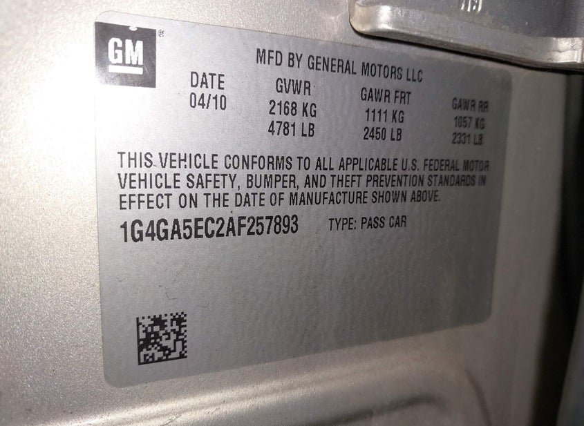 - VIN: 1G4GA5EC2AF257893