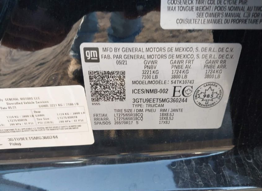 - VIN: 3GTU9EET5MG360244