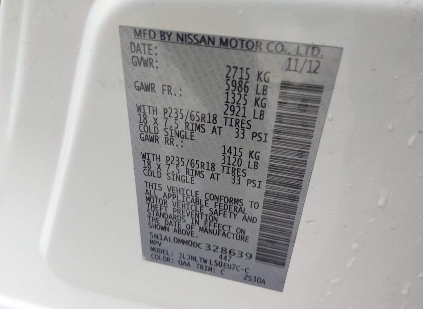 - VIN: 5N1AL0MM0DC328639