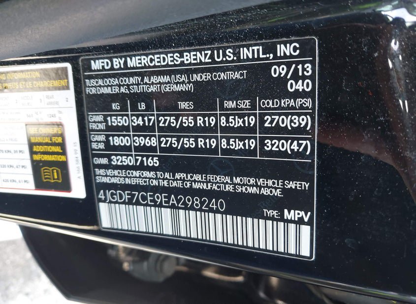 - VIN: 4JGDF7CE9EA298240