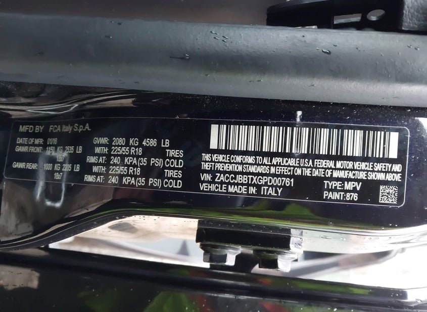 - VIN: ZACCJBBTXGPD00761
