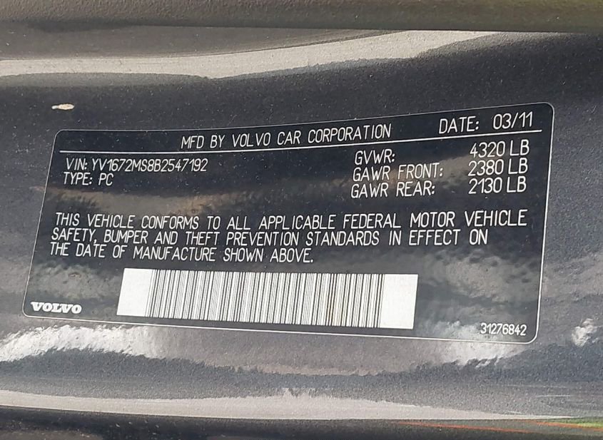 - VIN: YV1672MS8B2547192