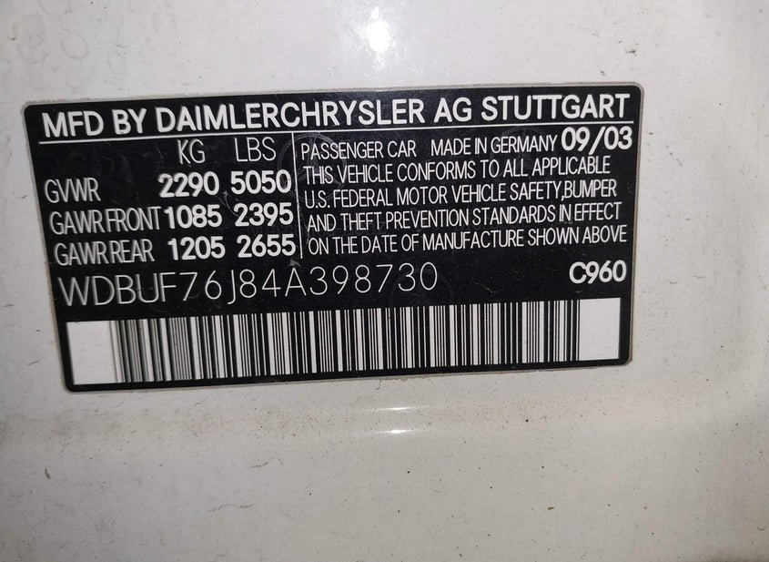 - VIN: WDBUF76J84A398730