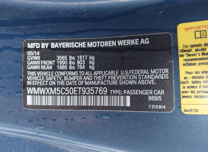 - VIN: WMWXM5C50ET935769