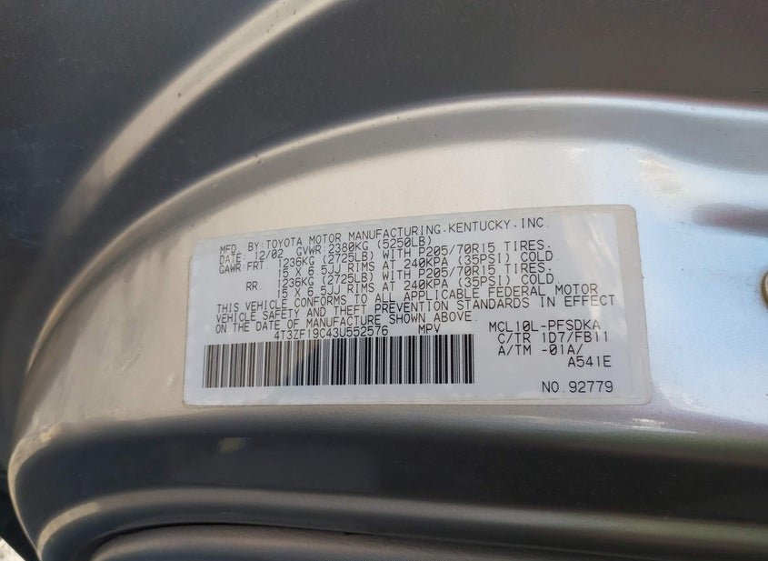 - VIN: 4T3ZF19C43U552576