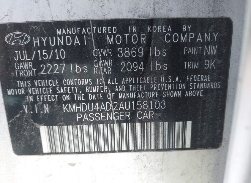- VIN: KMHDU4AD2AU158103