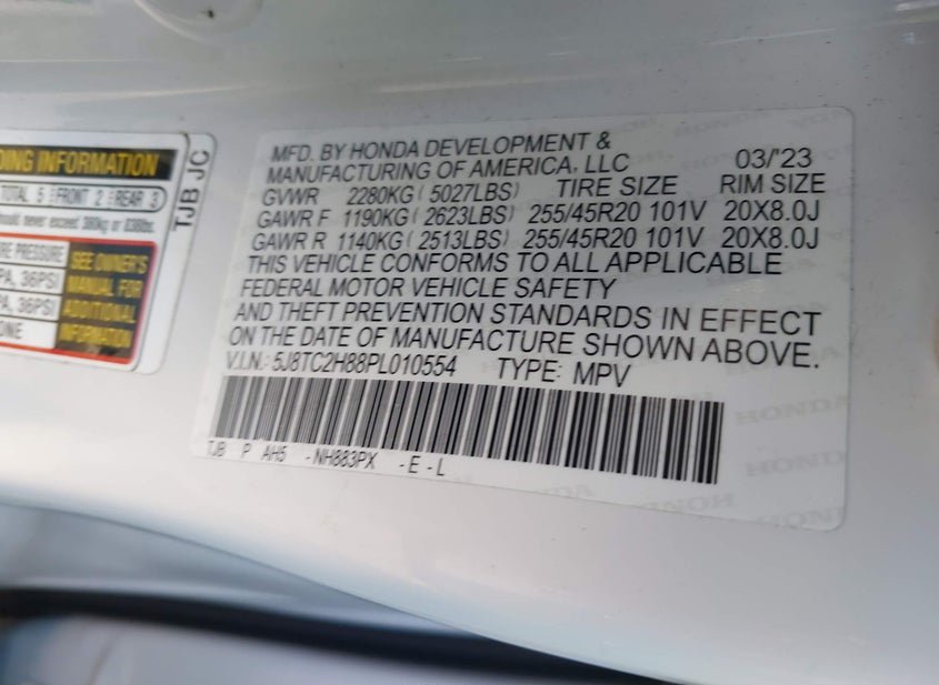 - VIN: 5J8TC2H88PL010554