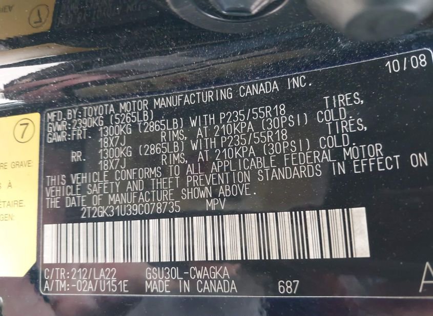 - VIN: 2T2GK31U39C078735