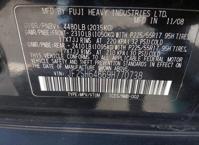 - VIN: JF2SH64669H770738