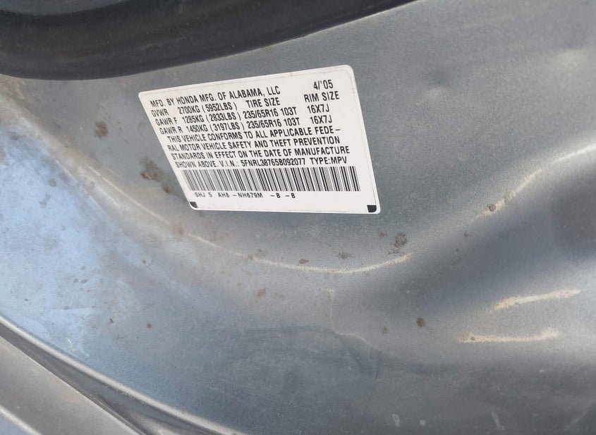 - VIN: 5FNRL38765B092077