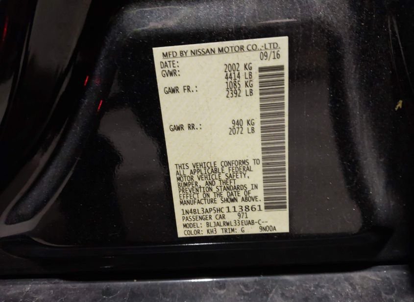 - VIN: 1N4BL3AP5HC113861