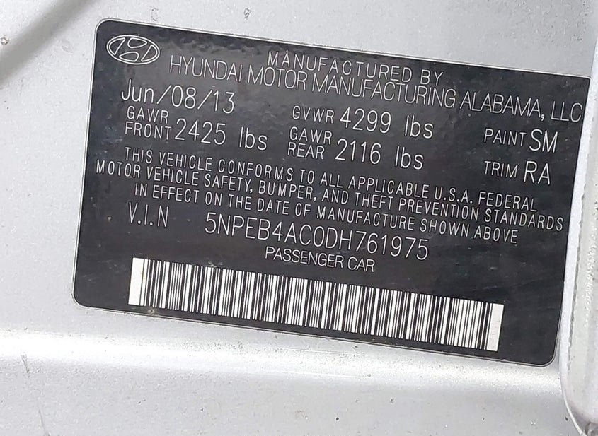 - VIN: 5NPEB4AC0DH761975