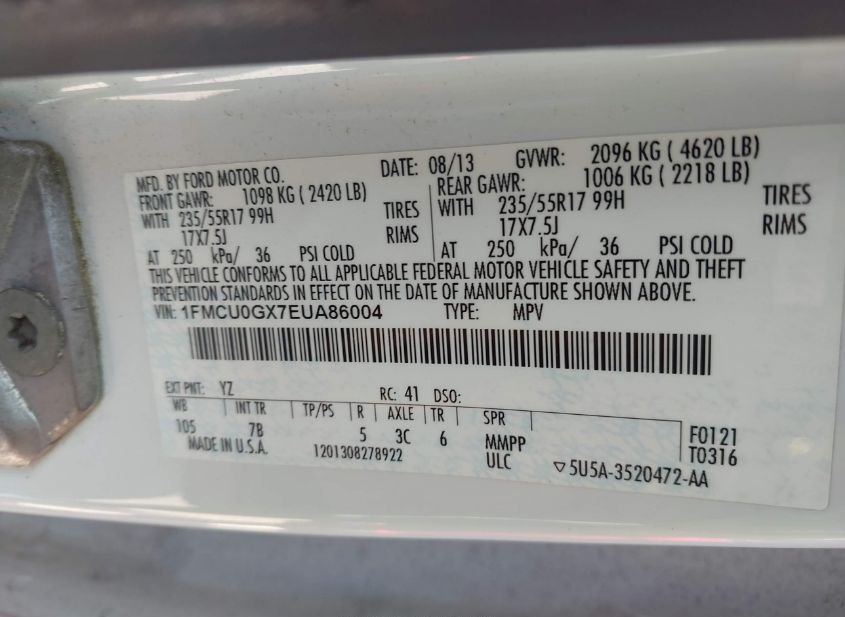 - VIN: 1FMCU0GX7EUA86004