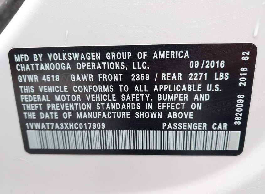 - VIN: 1VWAT7A3XHC017909