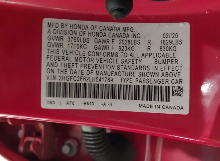 - VIN: 2HGFC2F62LH541769