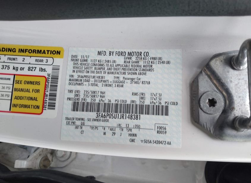 - VIN: 3FA6P0SU1JR148381