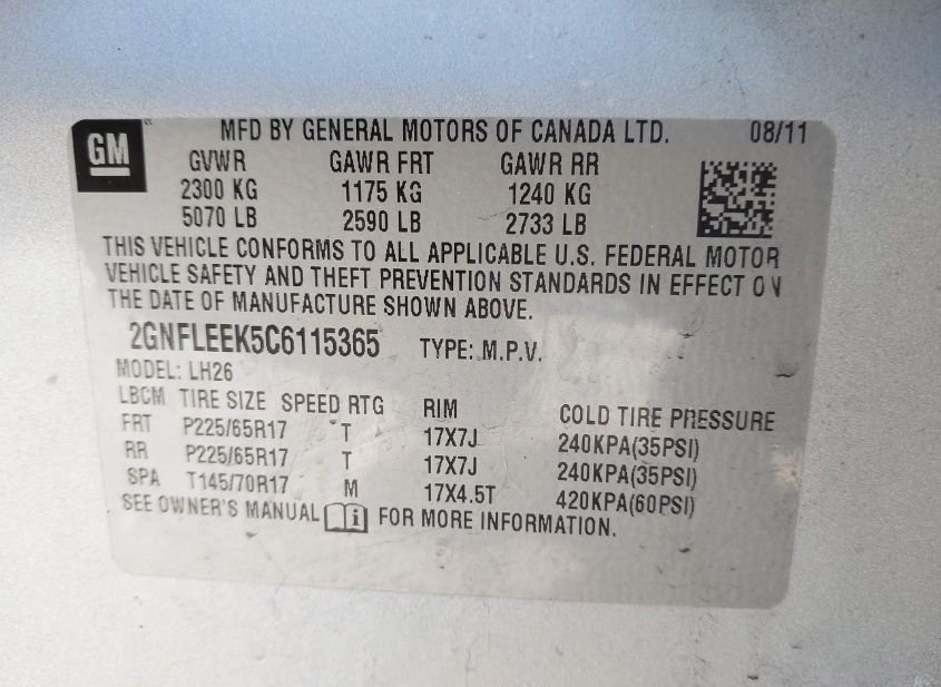 - VIN: 2GNFLEEK5C6115365