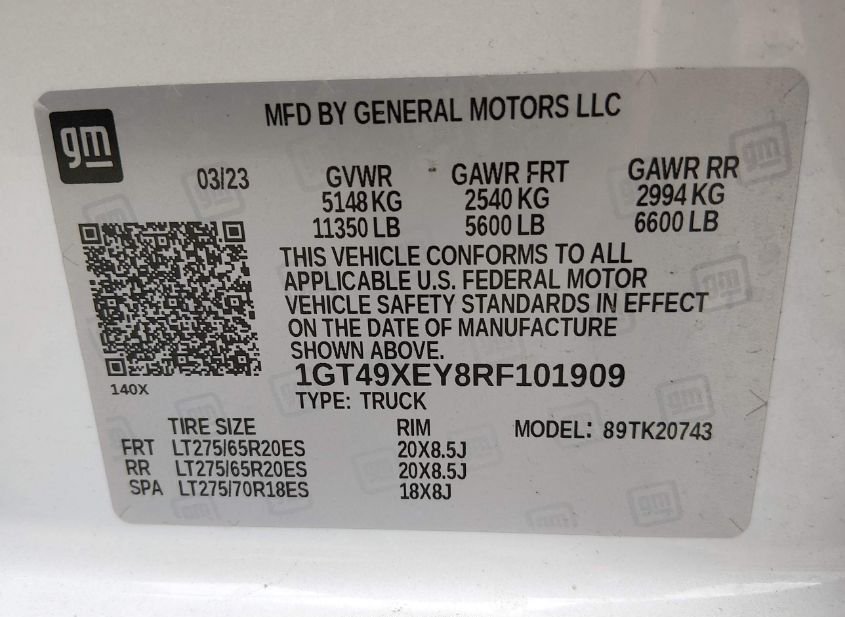 - VIN: 1GT49XEY8RF101909