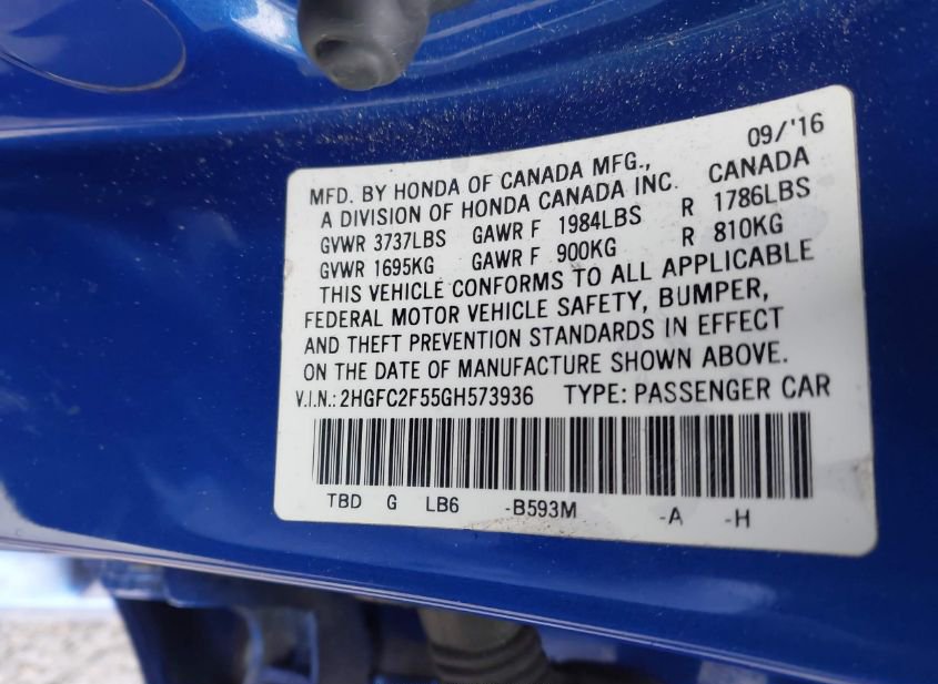 - VIN: 2HGFC2F55GH573936