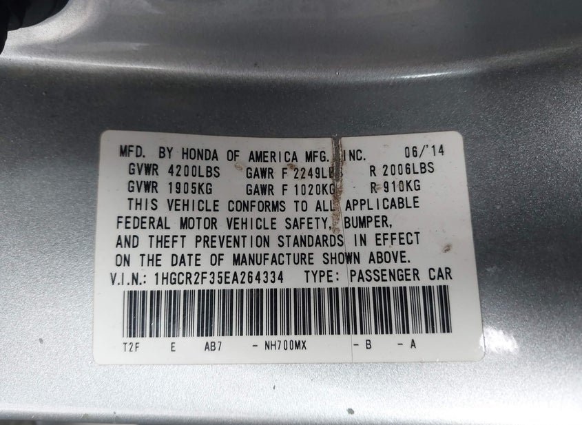 - VIN: 1HGCR2F35EA264334