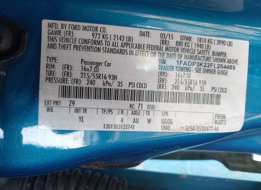 - VIN: 1FADP3K22FL264489