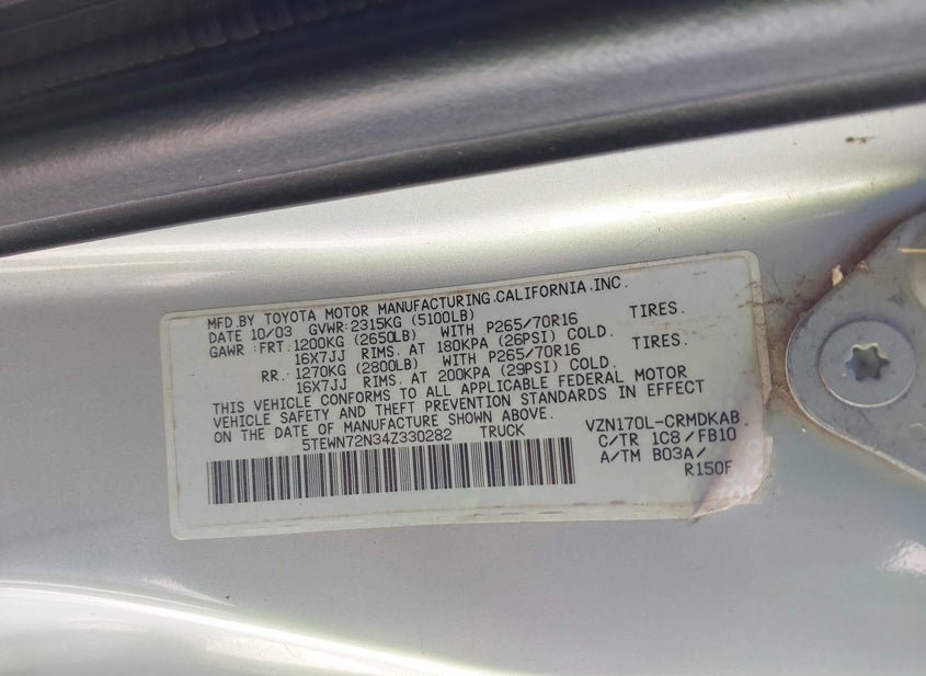 - VIN: 5TEWN72N34Z330282