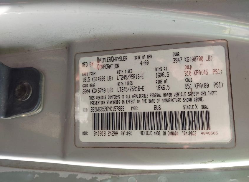 - VIN: 2B5WB35Z6YK157869