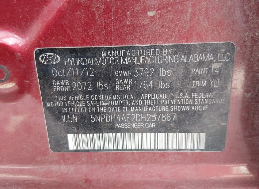 - VIN: 5NPDH4AE2DH237867