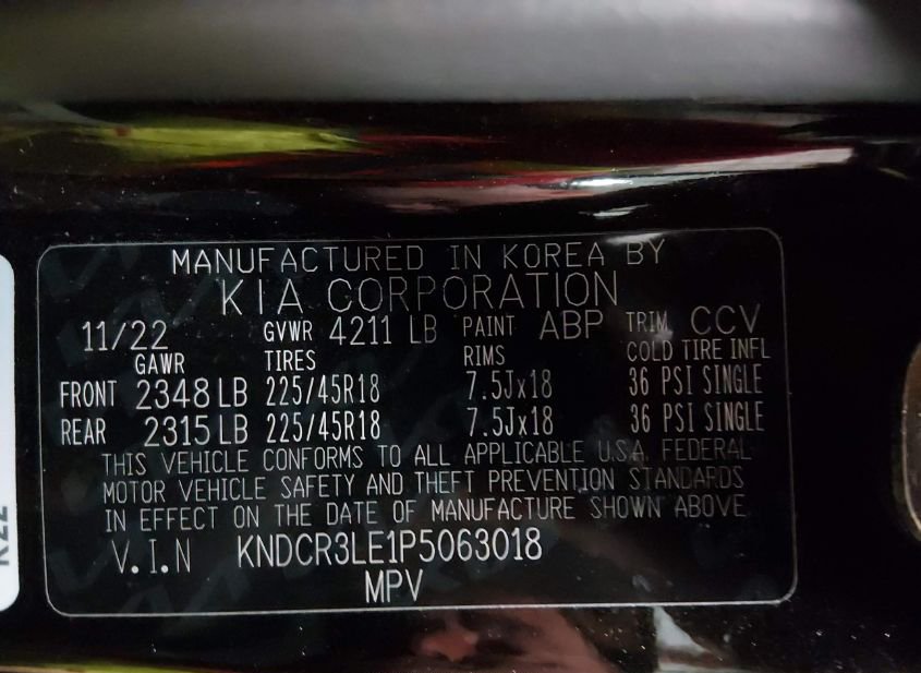 - VIN: KNDCR3LE1P5063018
