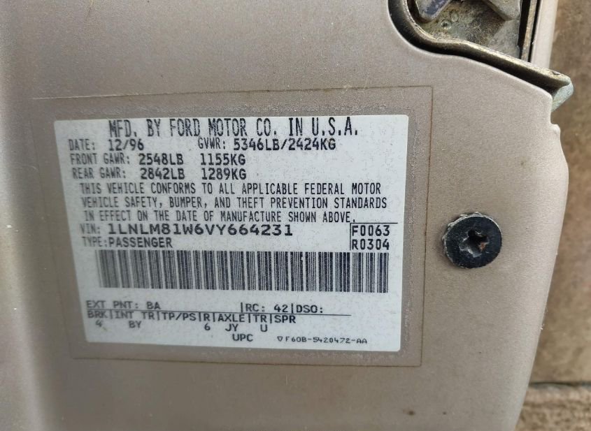 - VIN: 1LNLM81W6VY664231