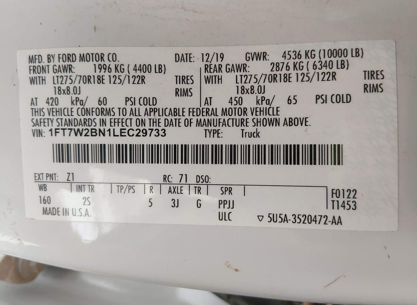 - VIN: 1FT7W2BN1LEC29733