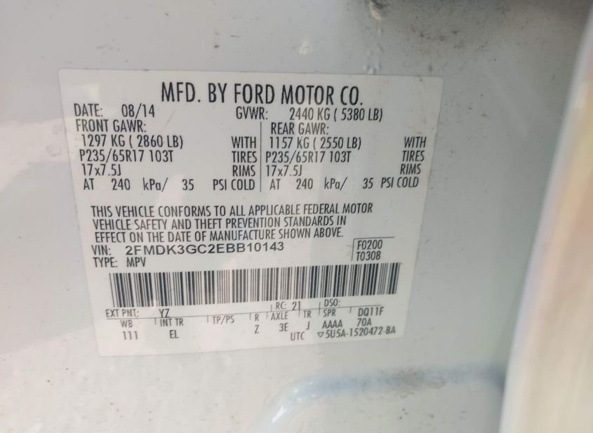 - VIN: 2FMDK3GC2EBB10143