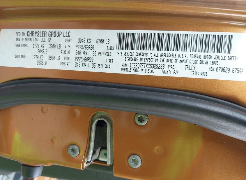 - VIN: 1C6RD7FTXCS329293