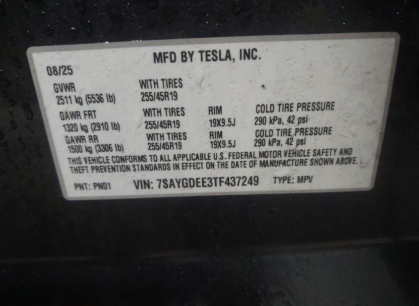 - VIN: 7SAYGDEE3TF437249