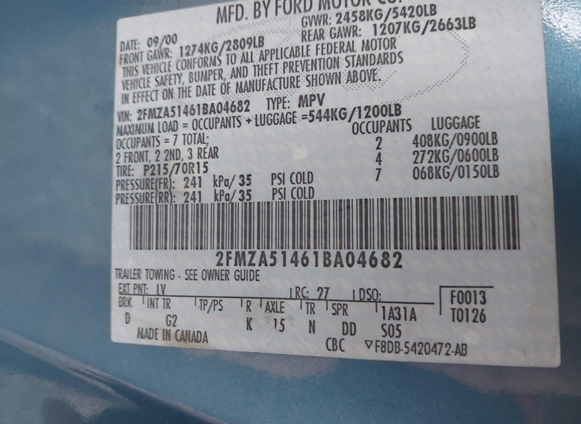 - VIN: 2FMZA51461BA04682