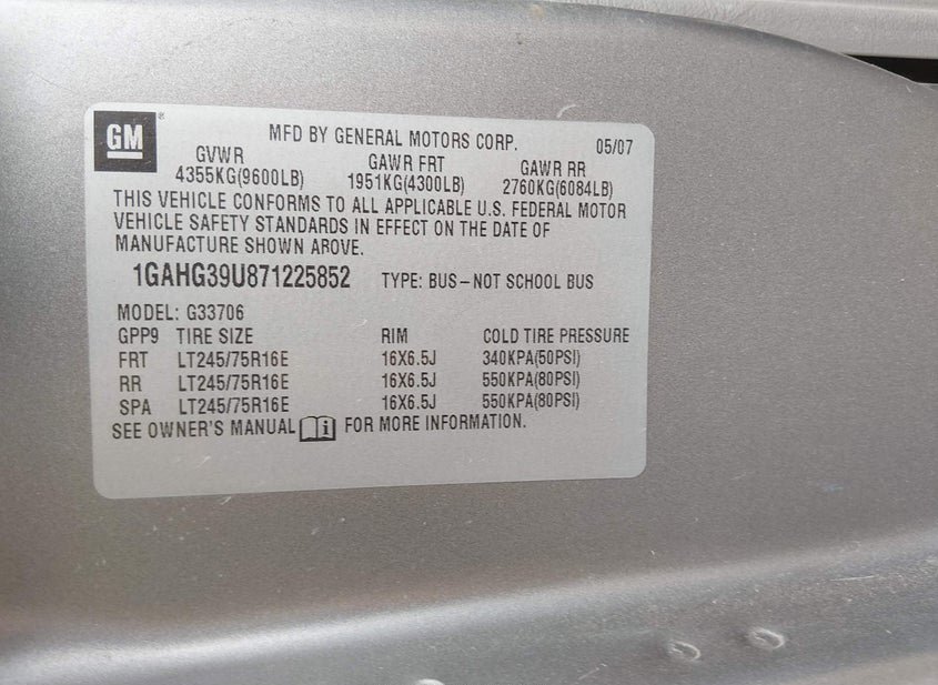 - VIN: 1GAHG39U871225852