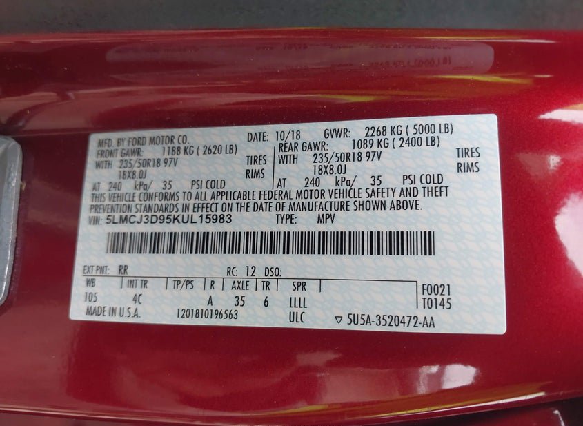 - VIN: 5LMCJ3D95KUL15983