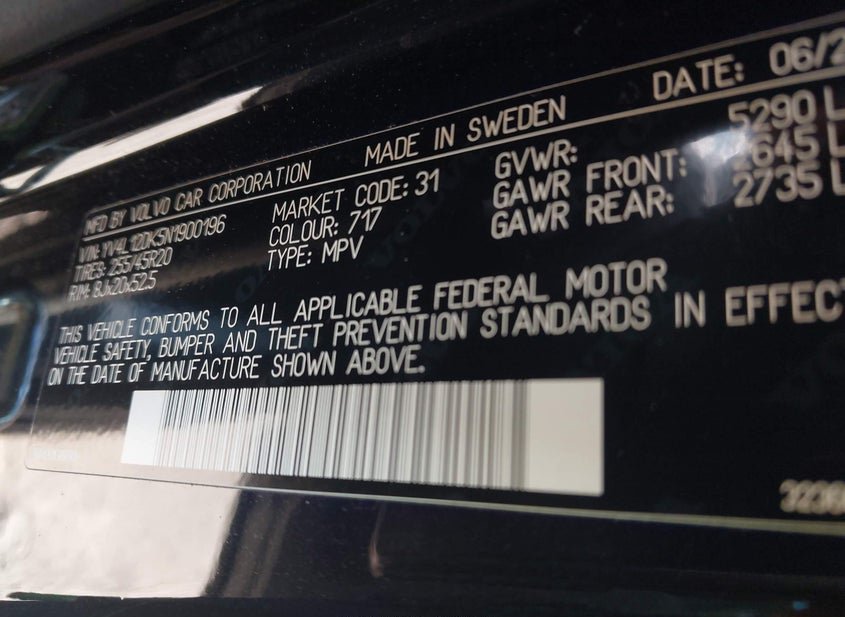 - VIN: YV4L12DK5N1900196